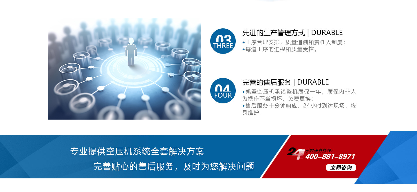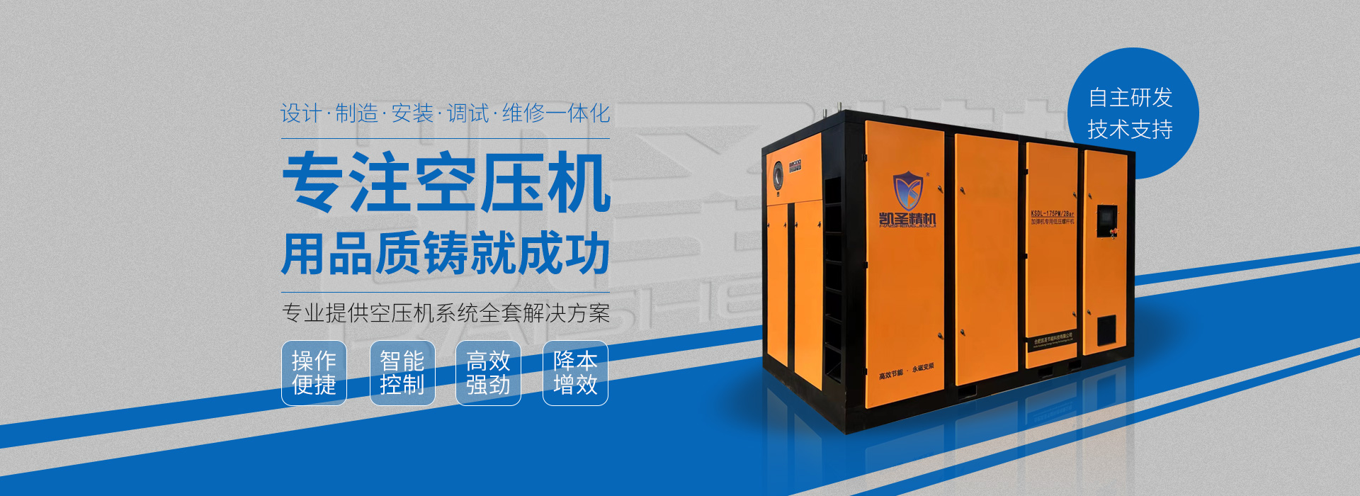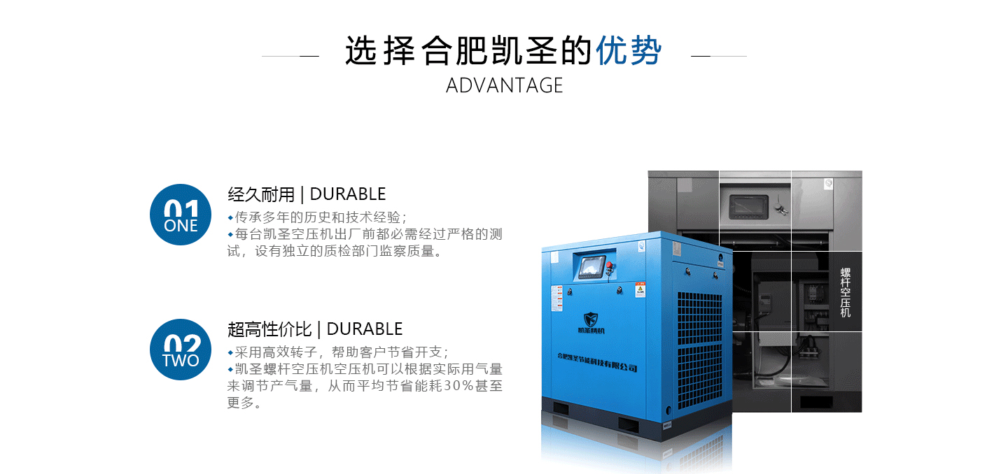合肥凱圣節(jié)能科技有限公司是從事永磁變頻螺桿壓縮機系統(tǒng)的設(shè)計、制造、安裝、調(diào)試、維修與一體的公司。 在多年的螺桿空壓機研發(fā)與推廣歷程里,凱圣聚集和培養(yǎng)了大量壓縮機技術(shù)設(shè)計和管理人員,迅速發(fā)展成為集研究、生產(chǎn)、銷售、服務(wù)等環(huán)節(jié)為一體、嚴格按照標準執(zhí)行的企業(yè),公司成立開始,即以滿足客戶的實際需求為己任,大力開拓國內(nèi)外節(jié)能型空壓機市場,并始終保持創(chuàng)新精神,全力研發(fā)更為節(jié)能的螺桿式空壓機,努力站在空壓機節(jié)能領(lǐng)域的排頭位置。 應(yīng)用范圍:公司產(chǎn)品廣泛應(yīng)用于機械、輕工、紡織、食品、石油、化工、冶金、礦山、電力、城建、醫(yī)學研究和科研等各行業(yè)中,將為節(jié)約能源做出巨大貢獻。公司秉承“信譽至上,...
